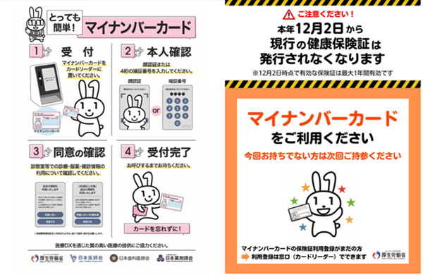 一般にDX(デジタルトランスフォーメーション)とはデジタル技術を活用し社会や生活の形を変えていく事を意味します。医療におけるDXでは 保険・医療・介護において発生した受診や診療、治療などのデータを全国的に共有・標準化することを通して、予防医療の促進と共に良質な医療を受けられるよう、取組みを進めていくとあります。その一環としてマイナンバーカードの健康保険証利用が促進・推奨されております。皆様のご協力をお願いいたします。